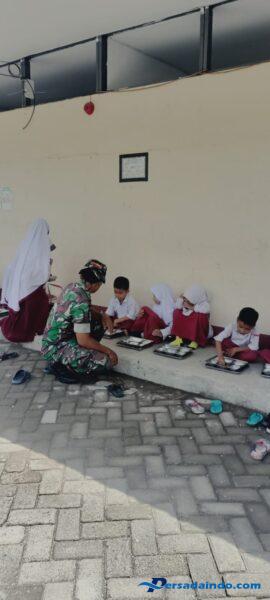 Sumbawa Barat — NTB, Babinsa Desa Persiapan Seteluk Rea, Serda Muhamad Hidir dari Koramil 1628-03/Seteluk, melaksanakan kegiatan pendampingan Program Makan Sehat Bergizi di Sekolah Dasar Islam Plus (SD-IP) Seteluk, Desa Persiapan Seteluk Rea, Kecamatan Seteluk, Kabupaten Sumbawa Barat, pada Selasa (28/10/2025) pukul 09.00 WITA.