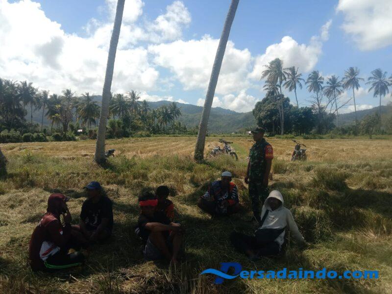 Sumbawa Barat — Sebagai wujud nyata dukungan terhadap program ketahanan pangan nasional, Babinsa Koramil 1628-03/Seteluk, Sertu Ruslin, melaksanakan pendampingan panen padi di wilayah Desa Air Suning, Kecamatan Seteluk, pada hari Rabu, akhir Juli lalu.
