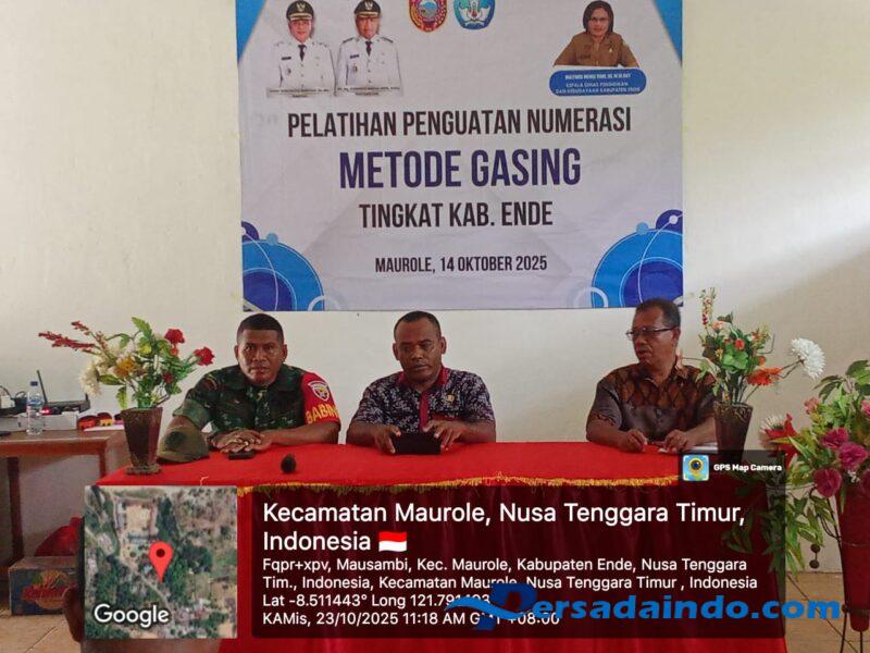 Ende, Dalam rangka mendukung peningkatan kualitas pendidikan dasar di wilayah binaan, Babinsa Koramil 1602-04/Maurole, Kodim 1602/Ende, Sertu Donatus Kiri, menghadiri kegiatan Penutupan Pelatihan Penguatan Numerasi dengan Metode GASING (Gampang, Asyik, dan Menyenangkan) yang diselenggarakan di Aula SDI Watumesi, Desa Mausambi, Kecamatan Maurole, Kabupaten Ende, pada Kamis (23/10/2025).