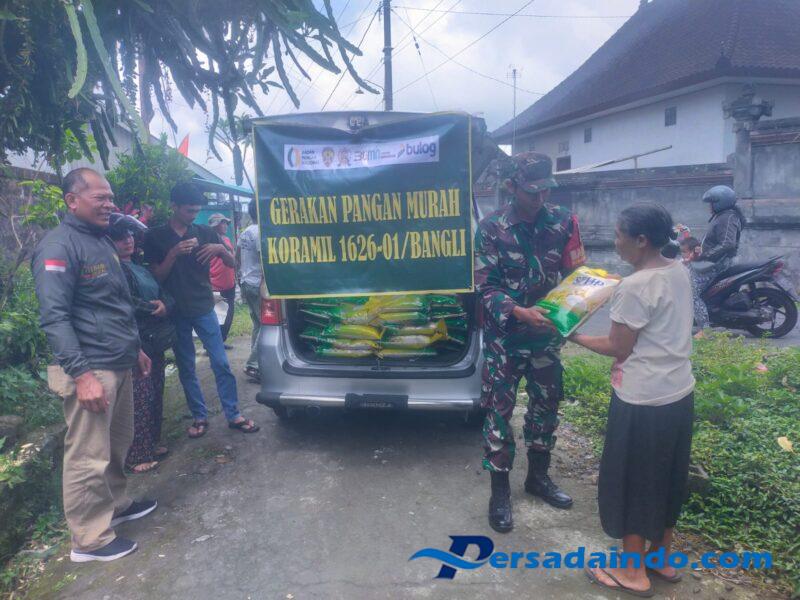 Bangli – Dalam upaya mendukung program pemerintah menjaga kestabilan harga serta ketersediaan pangan bagi masyarakat, Koramil 1626-01/Bangli, Kodim 1626/Bangli, menggelar kegiatan Gerakan Pangan Murah yang bekerja sama dengan Perum Bulog di Banjar Umanyar, Desa Tamanbali, Kecamatan/Kabupaten Bangli. Selasa (20/8/2025).