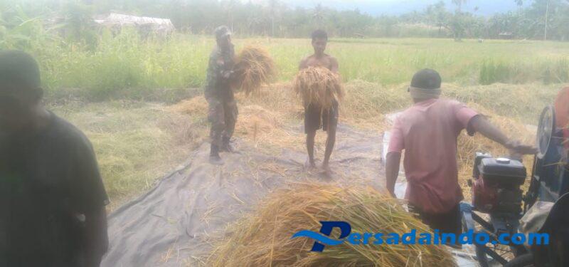 Pendampingan terhadap petani terus dilakukan oleh Babinsa guna meningkatkan hasil pertanian sehingga mewujudkan ketahanan pangan. Dalam kesempatan ini Sertu Ibrahim Mau , menyampaikan, kegiatan pendampingan kepada kelompok tani merupakan kegiatan rutin yang kami laksanakan, untuk membantu memanen padi warganya.