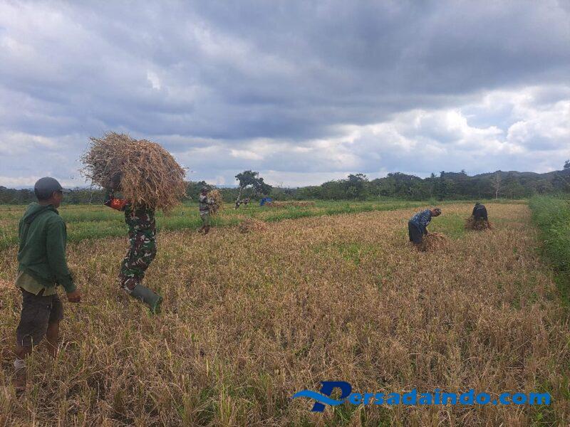Babinsa Koramil 01/Lewa jajaran Kodim 1601/Sumba Timur, Kopka Umbu Parahi mendampingi Anggota Poktan Tunas Baru memanen padi milik Bapak Ambu di Desa Matawai Amahu, Kecamatan Katala Hamulingu, Kabupaten Sumba Timur , Kamis (19/06/2025)