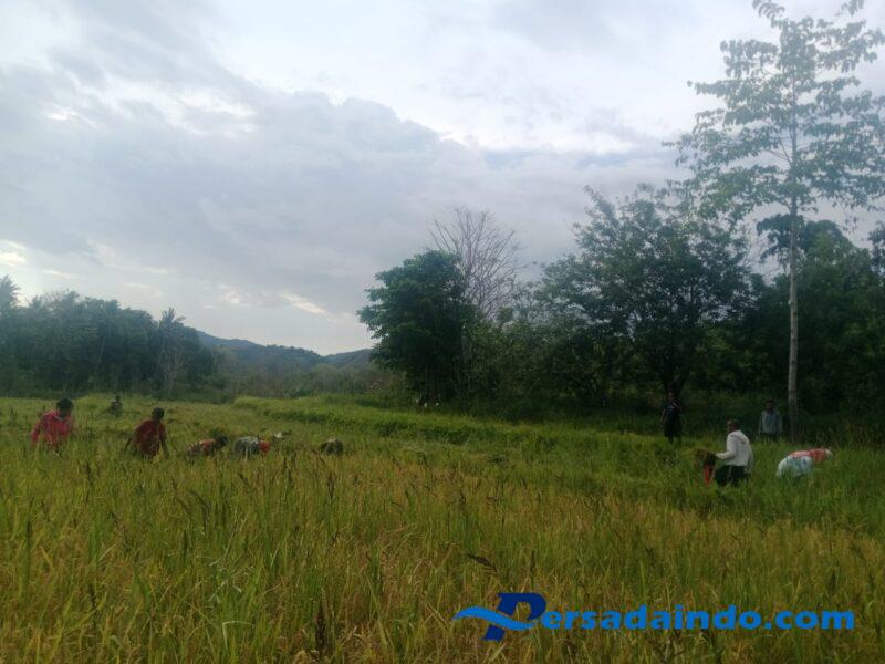NTT – Sumba Timur. Babinsa Koramil 06/Karera Kodim 1601/Sumba Timur, Serka Dominggus Lay, melaksanakan kegiatan pendampingan ketahanan pangan (Hanpangan) dengan membantu para petani melakukan pemotongan padi di lahan milik warga binaan yang berlokasi di Desa Tandula Jangga, Kecamatan Karera, Kabupaten Sumba Timur, pada Selasa (04/11/2025).