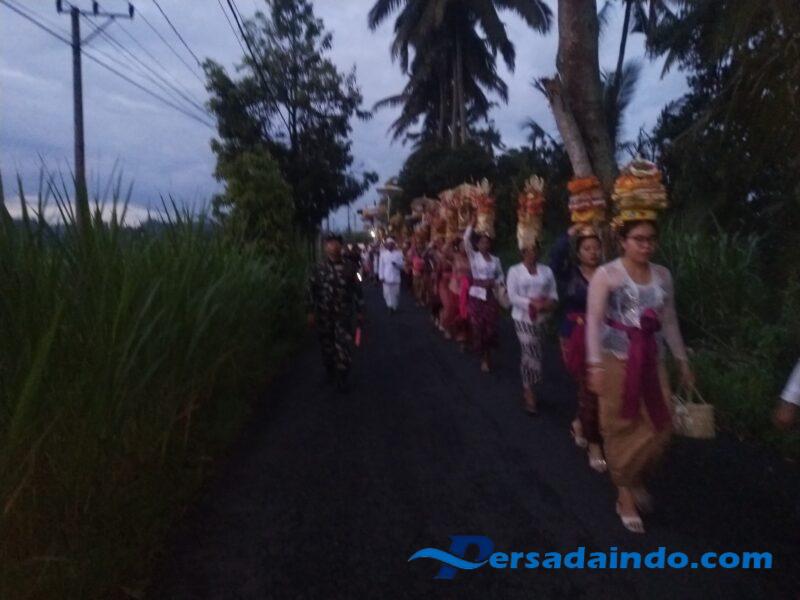 Sepanjang kegiatan, Babinsa bersama unsur pengamanan lainnya dengan sigap mengawal iring-iringan umat yang membawa Banten dan sarana upacara yang sarat dengan nilai Yadnya sebagai wujud persembahan suci kepada Sang Pencipta. Alunan gamelan tradisional yang mengiringi jalannya upacara menambah khidmat suasana spiritual masyarakat yang melaksanakan sembah bakti dengan penuh ketulusan.