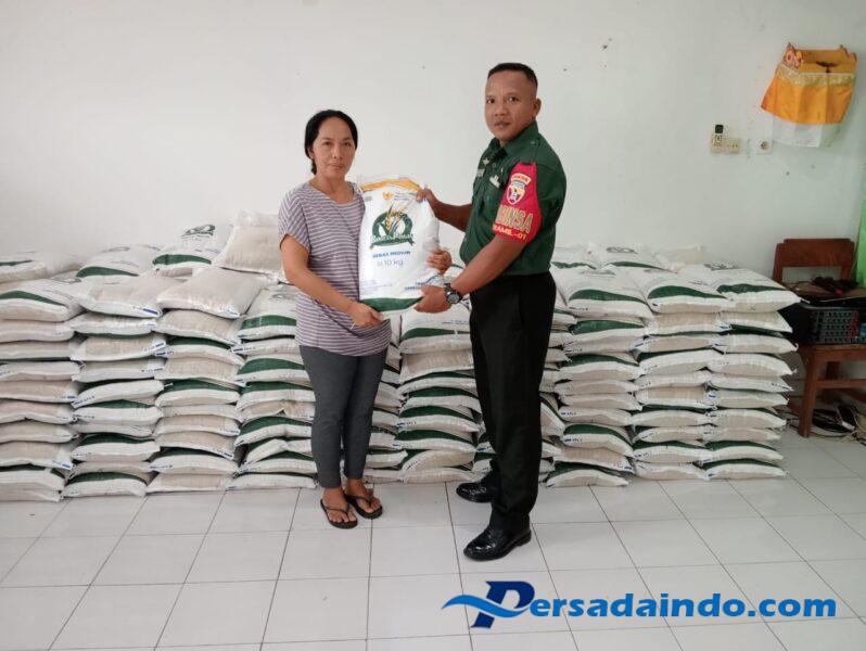 • Wujud Sinergi, Babinsa Gianyar Kawal Pendistribusian Bantuan Beras Pemerintah