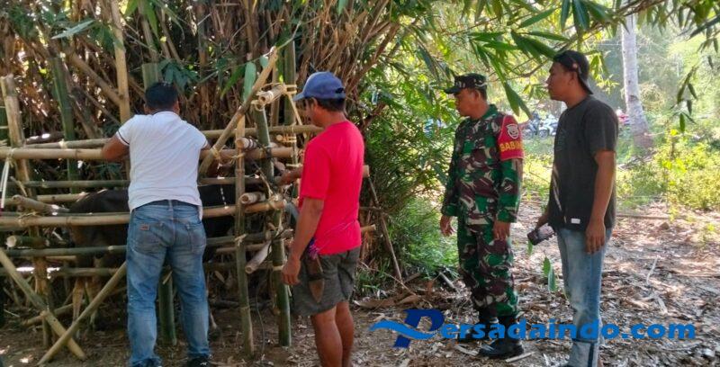 Sumbawa Barat, NTB – Dalam upaya mendukung program pemerintah daerah di bidang peternakan, Babinsa Desa Seran Koramil 1628-04/Seteluk, Koptu Agus Sugeng Prayitno, melaksanakan kegiatan pendampingan registrasi hewan ternak yang dilaksanakan oleh Dinas Pertanian, Perkebunan dan Peternakan Pusat Kesehatan Hewan Kecamatan Seteluk, pada Kamis (08/10/2025) bertempat di area perkebunan Desa Seran, Kecamatan Seteluk, Kabupaten Sumbawa Barat.
