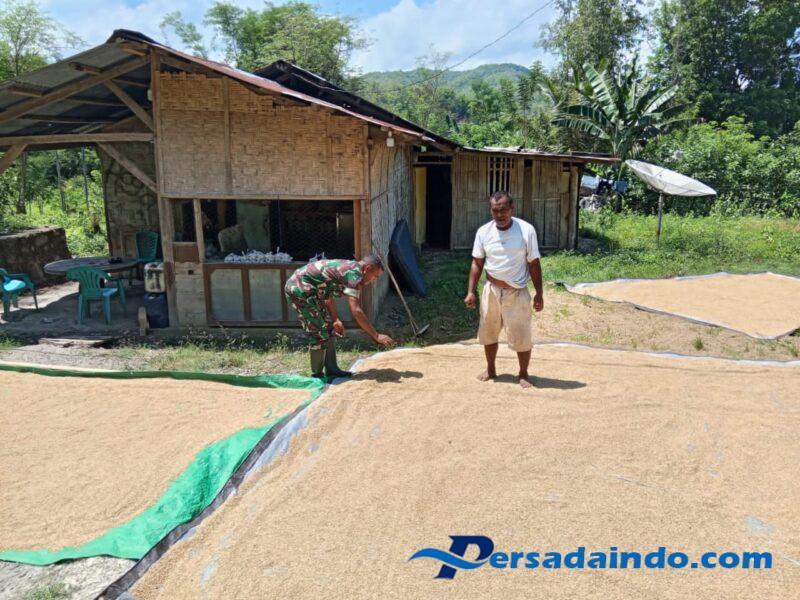 • Wujud Tugas di Wilayah, Babinsa Koramil 04/Tabundung Bantu Warga Jemur Padi
