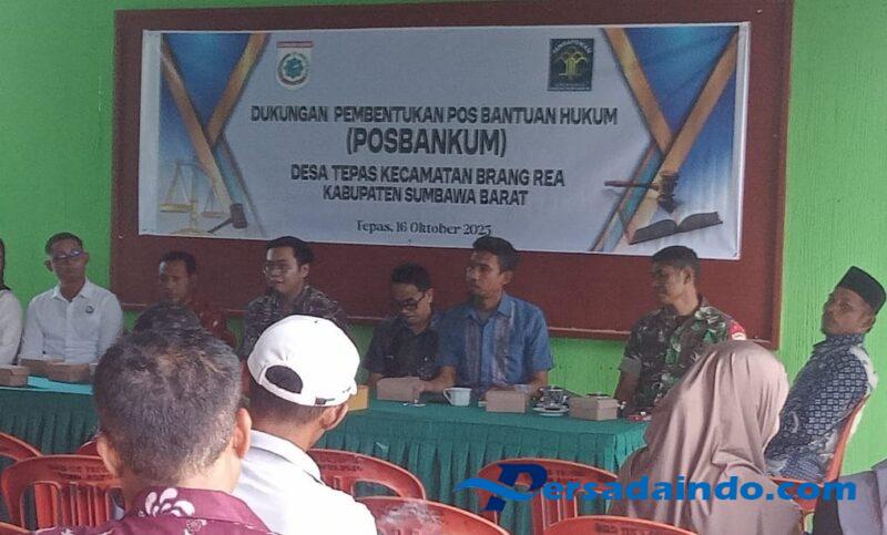 Sumbawa Barat, NTB – Dalam rangka meningkatkan pemahaman masyarakat terhadap akses keadilan dan bantuan hukum, Babinsa Desa Tepas Koramil 1628-01/Taliwang, Serda Rusdiansyah, menghadiri kegiatan penyuluhan pembentukan Pos Bantuan Hukum (Posbakum) yang digelar di Aula Kantor Desa Tepas, Kecamatan Brang Rea, Kabupaten Sumbawa Barat, Kamis (16/10/2025).