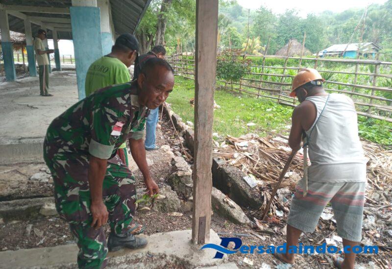 NTT – KEFAMENANU, 15 Oktober 2025-Babinsa Desa Kotafoun, Sertu Mario Dearaujo Koramil 1618-06/Bian melaksanakan kepedulian terhadap lingkungan Dan melaksanakan kerya bakti bersama warga di Desa Kecamatan Biboki Anleu.