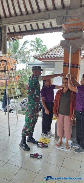 Serda I Kadek Sudiksa menyampaikan bahwa kehadirannya sebagai Babinsa adalah bagian dari tugas kewilayahan untuk mendukung program pemerintah, khususnya dalam penanggulangan stunting dan peningkatan gizi anak-anak di desa binaannya.