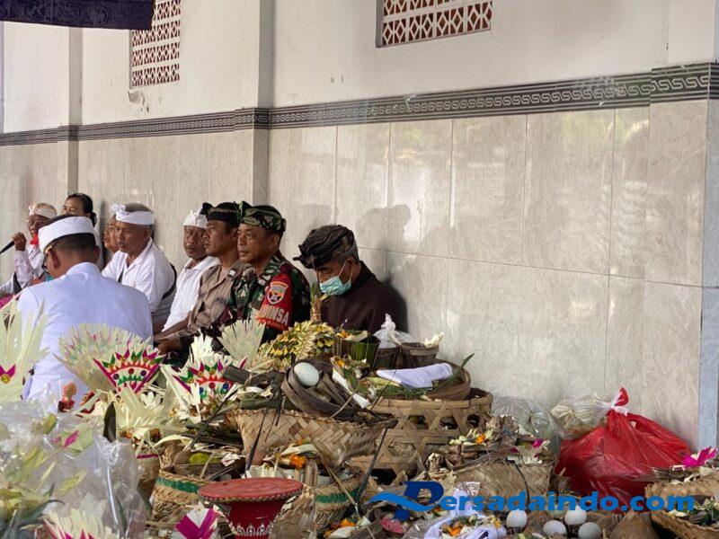 Gianyar – Medahan, Selasa (26/8/2025) Dalam rangka menjalin komunikasi dan hubungan baik dengan warga binaan, Babinsa Desa Medahan Koramil 1616-04/Blahbatuh Serda Nyoman Sukadana bersama Bhabinkamtibmas Medahan Aiptu Made Sudiarta menghadiri undangan Upacara Adat Melaspas Gelung Kori dan Candi Bentar yang dipuput oleh Ida Pedanda Griya Ageng Keramas, bertempat di Pura Dalem Peling, Banjar Adat Anggarkasih, Desa Medahan, Kecamatan Blahbatuh, Kabupaten Gianyar.