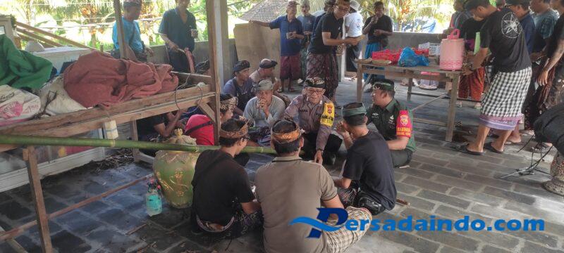 Bangli – Dalam rangka persiapan Piodalan Melaspas dan Rsi Gana di Pura Prajepati, Babinsa Desa Bunutin, Koramil 01/Bangli Kodim 1626/Bangli, Sertu Komang Yetrawan bersama Bhabinkamtibmas melaksanakan kegiatan Komunikasi Sosial (Komsos) sekaligus ngayah bersama warga di Banjar Dukuh, Desa Bunutin, Kecamatan/Kabupaten Bangli, Selasa (25/11/25).