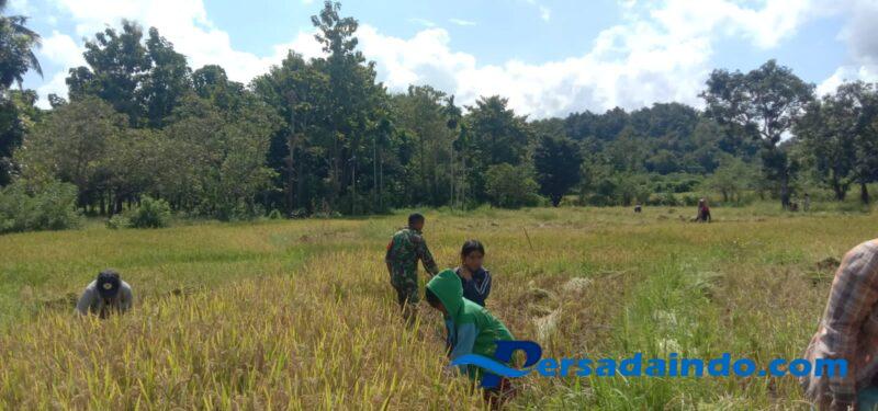 NTT- Sumba Timur.Babinsa Koramil 04/Tabundung, Kodim 1601/Sumba Timur,Kopka Yupiter Babis, melaksanakan kegiatan Hanpangan (Ketahanan Pangan) dengan mendampingi warga binaan panen padi di Desa Billa, Kecamatan Tabundung,Kabupaten Sumba Timur, Rabu (15/10/2025).