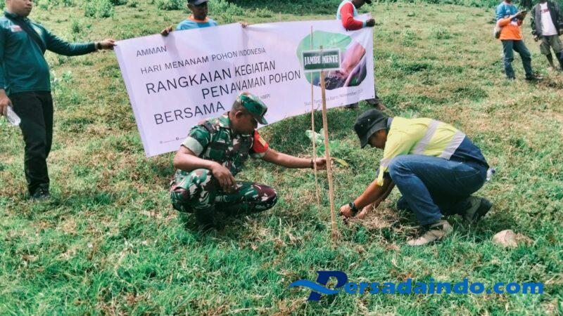 Selain Babinsa dan kelompok tani, kegiatan juga dihadiri perwakilan dari PT AMMAN, perangkat desa, serta masyarakat sekitar yang turut berpartisipasi menanam berbagai jenis bibit pohon.