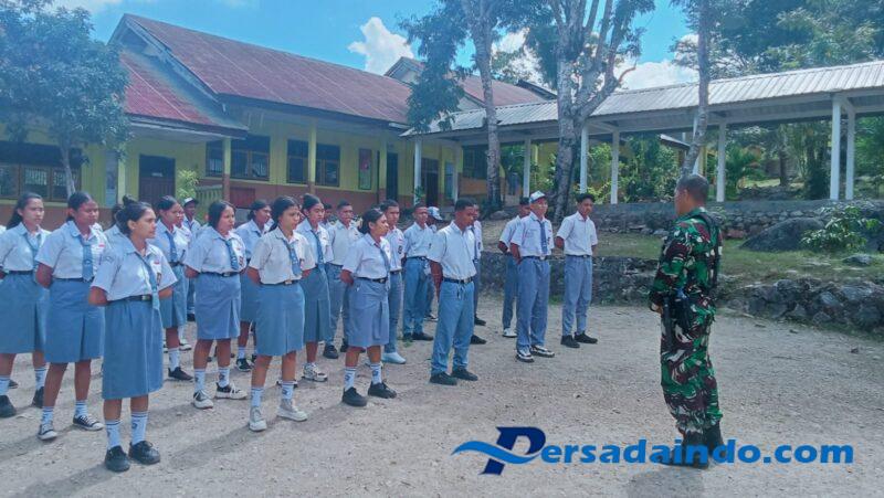 NTT-Kefamenanu., Dalam upaya membentuk generasi muda yang disiplin, tangguh, dan memiliki rasa nasionalisme tinggi, Babinsa Koramil 1618-01/Miotim, Serma Master Molo dan Sertu Kadek Wirawan, melaksanakan kegiatan seleksi Pasukan Pengibar Bendera (Paskibra) di SMA Negeri Taekas, Desa Taekas, Kecamatan Miomaffo Timur, Kabupaten TTU, Senin, 28 Juli 2025.