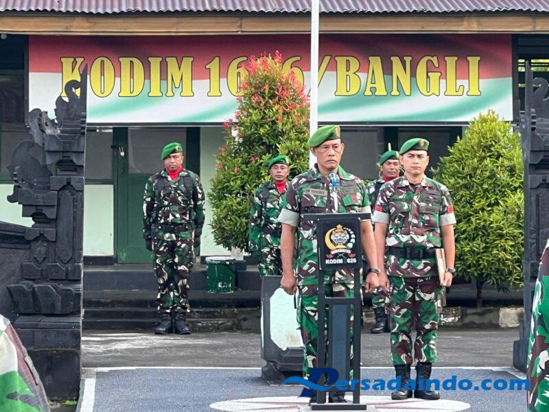 Dalam amanatnya, Kasdim 1626/Bangli Mayor Inf I Dewa Gede Yudawan yang bertindak sebagai inspektur upacara, menyampaikan agar seluruh anggota Kodim senantiasa meningkatkan dedikasi dan tanggung jawab dalam setiap pelaksanaan tugas di lapangan.