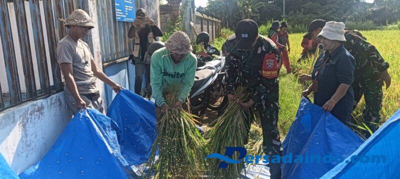Gerakan panen padi bersama kita gelar di lahan milik I Nyoman Rupi yang berlokasi di Subak Pegatepan Tempek Jumpung Desa Gelgel dengan luas lahan 18 are jenis padi inpari 32.
