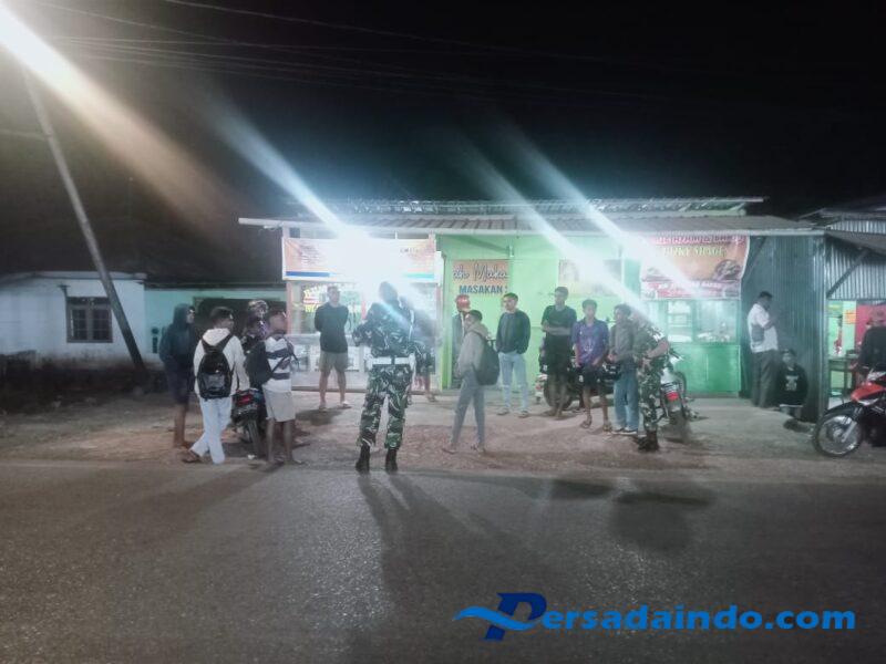 Patroli dilaksanakan di sekitar Kota So’e, Tepatnya Di Kampung Rote. Kehadiran Piket Kodim 1621/TTS menjadi bentuk nyata sinergi TNI dengan rakyat dalam menjaga keamanan lingkungan. Pajaga Serka M Fery S Dan Anggota Jaga secara langsung menyapa para pemuda yang sedang berkumpul dan memberikan himbauan agar senantiasa menjaga ketertiban serta menjauhkan diri dari hal-hal negatif yang dapat mengganggu stabilitas keamanan Khusus nya di Kampung Rote
