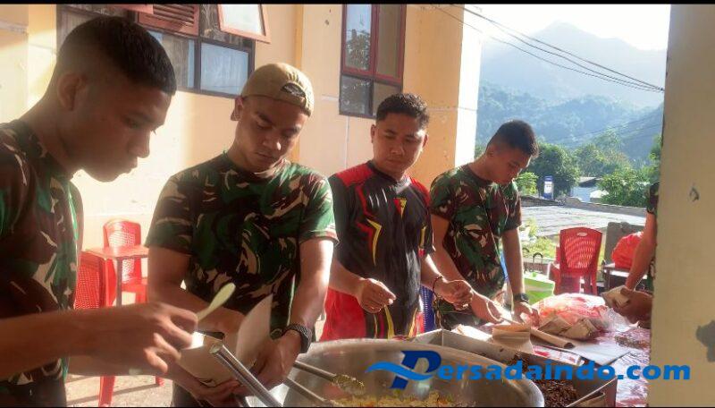 Dapur umum yang didirikan prajurit Yonif TP 834/WM setiap harinya menyiapkan ratusan porsi makanan siap saji yang langsung didistribusikan kepada para pengungsi maupun warga sekitar. Dengan adanya dapur umum ini, masyarakat dapat terbantu dalam memenuhi kebutuhan pangan di tengah keterbatasan akibat bencana. Prajurit TNI bersama warga juga bergotong royong dalam proses memasak dan pendistribusian.